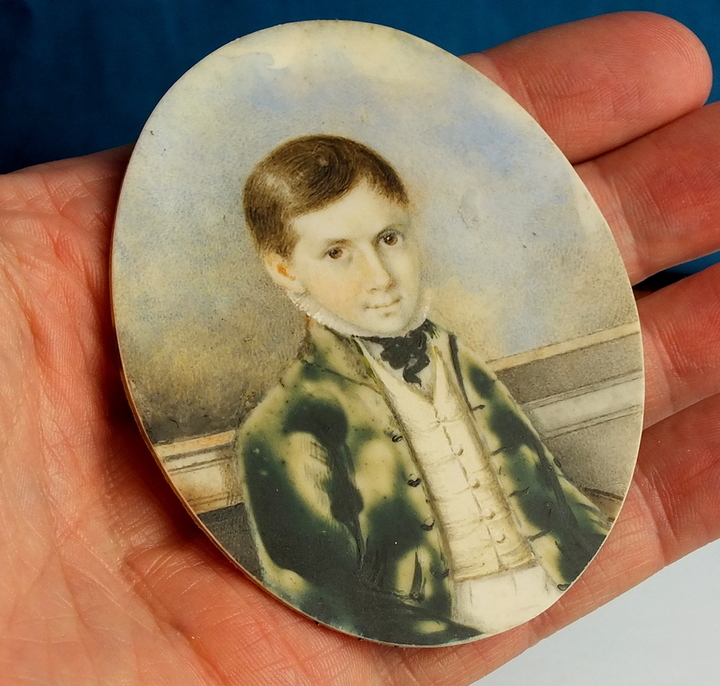 Portrait Miniature Of A Boy In Green Velvet Jacket,
